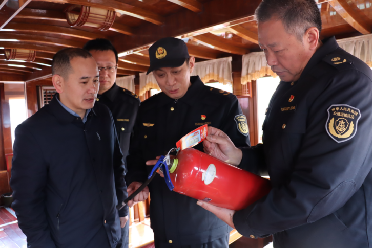 在鹽城大洋灣景區(qū)水上游覽項目現(xiàn)場,督查組對水上旅游項目進行備案檢查,仔細查看滅火器等消防器材和智能裝備,排除風險隱患,嚴把從業(yè)人員資格關(guān)、船舶技術(shù)關(guān),發(fā)現(xiàn)問題要求及時整改,大力營造安全、和諧交通運輸環(huán)境,全力保障假日期間水上游覽安全、有序、暢通。