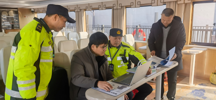 該支隊還組織船檢大隊驗船師和水上大隊安檢員聯(lián)合對景區(qū)游覽船和新洋港櫻花號、天妃號游船進行全面安檢,認真檢查航行設(shè)備、智能設(shè)備、信號設(shè)備、消防救生設(shè)備、報警設(shè)備、逃生通道及船員履職情況,全覆蓋檢查,不留死角,一船一檔,發(fā)現(xiàn)安全隱患輕微的,立即整改,存在嚴(yán)重安全隱患的,限期整改,復(fù)查合格后,才能經(jīng)營,以保障群眾春運春節(jié)期間水上出行安心、放心。