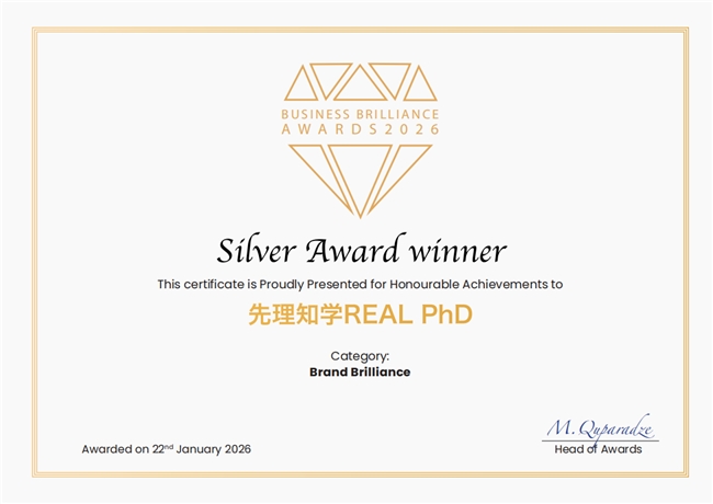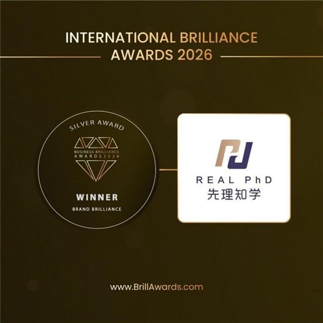 近日,國際權(quán)威獎項International Brilliance Awards公布年度獲獎結(jié)果。一站式海外博士申請服務(wù)品牌——先理知學(xué)REAL PhD(簡稱“先知”)憑借卓越的綜合實力,成功榮獲 International Brilliance Awards - Business Brilliance Awards 2026 中的 Brand Brilliance Silver Award,并獲評審委員會高度評價:“This is a brand that does things the right way. Strong academic standards, clear values, and a real sense of care for the people it serves.”(“先理知學(xué)REAL PhD,堅守專業(yè)高度,踐行清晰價值觀,以真誠關(guān)懷托舉每一位學(xué)子申博夢?!保?/span>