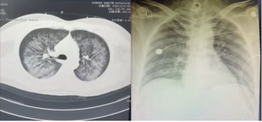 左圖12月8日胸部CT,右圖12月14日床旁胸片