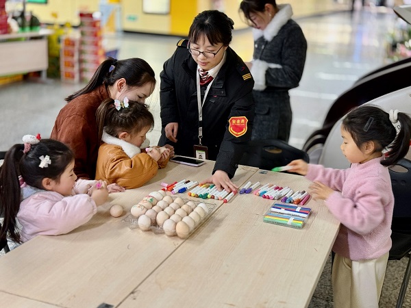 活動現(xiàn)場,工作人員備好雞蛋、畫筆等材料,細致講解“春分立蛋”民俗淵源、畫蛋技巧與安全事項。乘客們踴躍參與,揮筆創(chuàng)作,將春日景致繪于蛋殼,把美好期許藏于蛋中,現(xiàn)場洋溢著歡樂的春日氛圍。