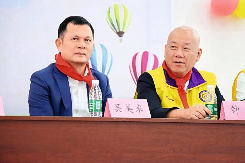 鐘平(右)在“獅愛潤徐聞·助學暖春光”活動現(xiàn)場