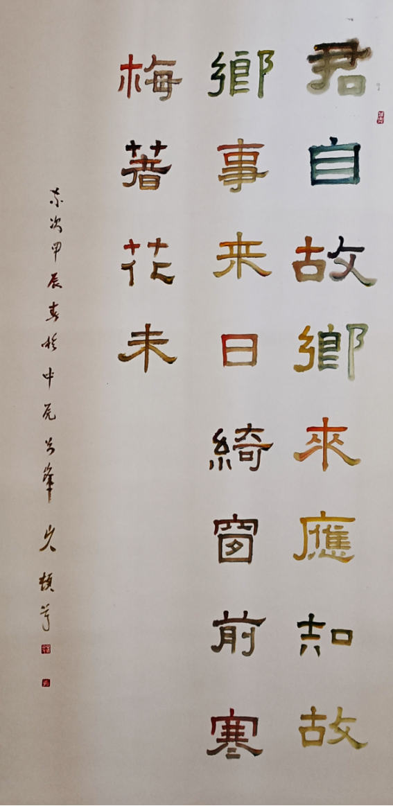 2024 年是其藝術(shù)成果豐收之年:2 月,《彩色書法字體》獲國家版權(quán)局登記保護(hù);4 月,參展第 36 回全日中展(東京書畫藝術(shù)大展),促進(jìn)中日文化藝術(shù)交流;5 月,作品入選 “傳新 全國書畫名家邀請展”(中國美術(shù)出版總社大廈人美美術(shù)館);6 月,作品《楓橋夜泊》入展 “中國氣韻 以藝通心” 書畫名家邀請展(北京民族文化宮);8 月,出版《潘大江國畫作品選?中國高等藝術(shù)院校名師教學(xué)范本》,為書畫教育提供實踐參考。此外,作品還入編《翰墨傳奇 藝壇巨匠 —— 時代功勛人物》等多部重要藝術(shù)典籍,被海內(nèi)外藏家與機構(gòu)關(guān)注收藏。