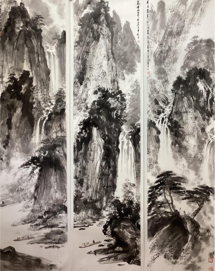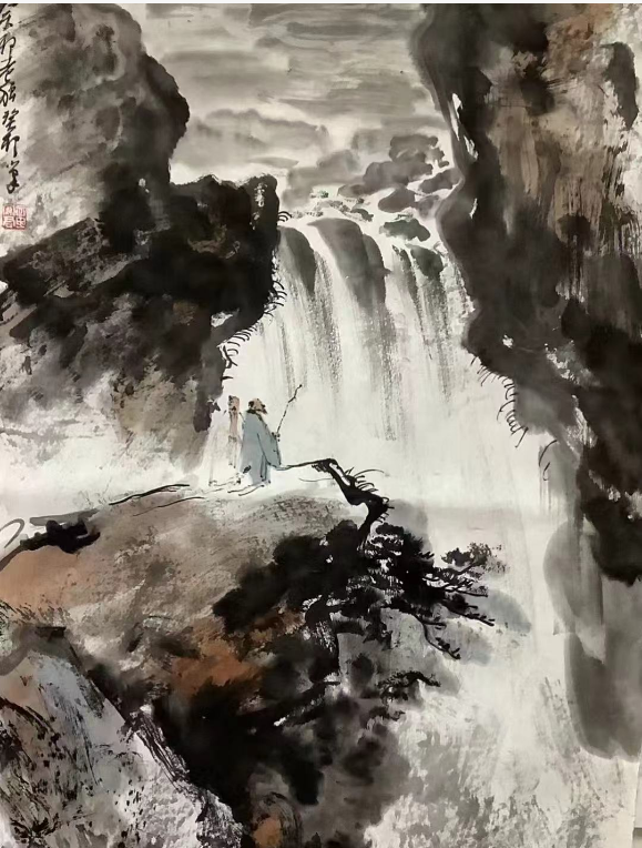 但一次上海朵云軒的一次邂逅則是撼動靈魂的雷霆“看到傅抱石真跡畫作,非常震憾,其畫風(fēng)激揚澎拜、人物高古蒼涼?!?nbsp;那一刻,紙上的筆墨不再是靜默的技法,而是化作排山倒海般的生命律動。章安君當(dāng)即購下大量傅抱石著述閉門研習(xí),這位金陵畫派宗師的“抱石皴”與高古人物,在他心中種下了“以氣韻馭筆墨”的種子。這次頓悟成為他藝術(shù)生涯的關(guān)鍵轉(zhuǎn)折點,讓他徹悟:真正的繪畫不是物象的描摹,而是胸中塊壘的傾瀉,是“高古蒼涼”四字所承載的千年文脈。