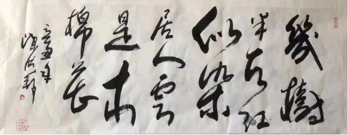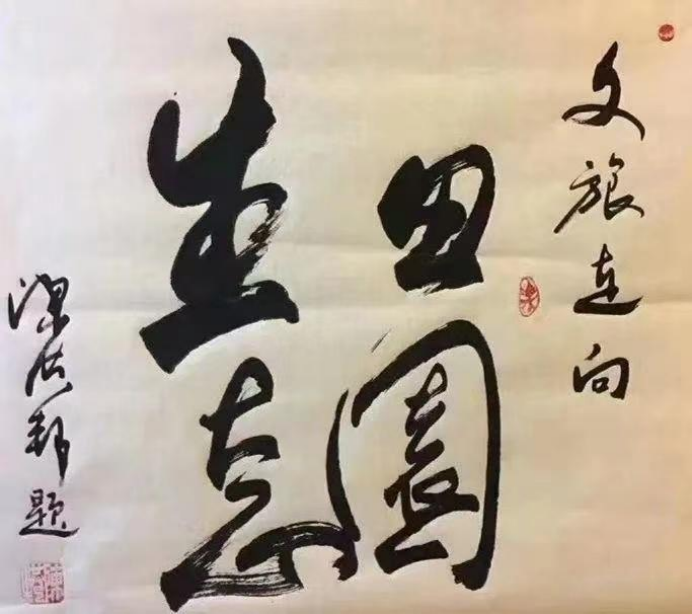 即便在為市場創(chuàng)作的《大展鴻圖》《海納百川》等題材中,他也并非一味迎合,而是巧妙地融入風(fēng)水學(xué)原理與個人的藝術(shù)思考。例如將“大”字寫成昂首起飛的雄鷹,既滿足了老板們的心理需求,又讓觀眾在欣賞時產(chǎn)生莫名的力量感 。他說:“老板喜歡了,我的生存需要就解決了。”這種坦率,正是他歷經(jīng)生活磨難后的通透。