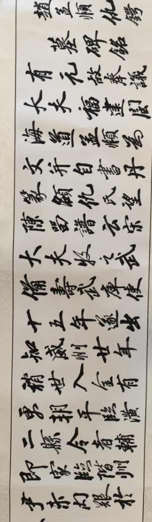 漸長之后,他在家中舊桌上練字,田字本用盡便以新紙續(xù)之。適逢文革時期墻報盛行,他得以執(zhí)筆辦報,練筆機(jī)緣自此而來。習(xí)慣養(yǎng)成之后,他常動筆不輟,臨習(xí)字帖如獲泉源,書法功底日漸深厚。