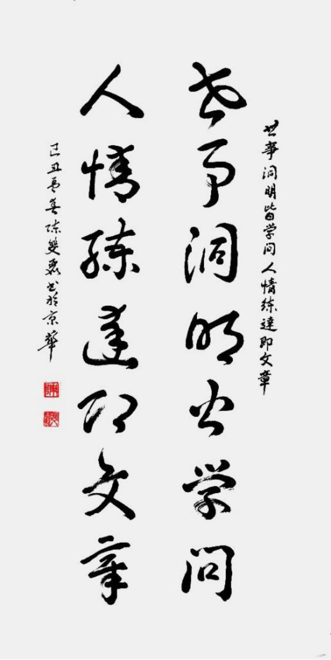 他在創(chuàng)作中堅(jiān)持“以學(xué)養(yǎng)藝、以藝弘道”,將書法藝術(shù)視為連接傳統(tǒng)與現(xiàn)代、中國(guó)與世界的文化紐帶。這種對(duì)藝術(shù)的敬畏與對(duì)文化的擔(dān)當(dāng),貫穿于他數(shù)十年的藝術(shù)實(shí)踐中。