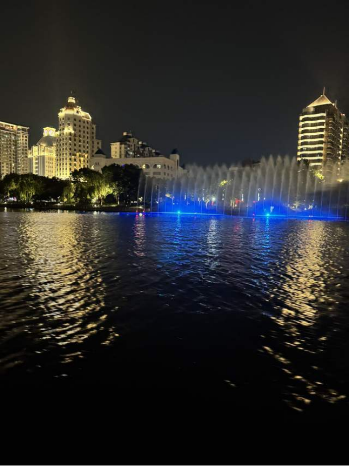 白日的喧囂如潮水般退去,當夜幕為南通城披上一襲深藍色的紗衣時,我才真正領(lǐng)悟,濠河最美的風華,要在夜晚才能窺見全貌。這環(huán)繞老城的千年碧玉,在夜色與燈光的點化下,化作一條流動的、鑲嵌著城市靈魂的光帶。