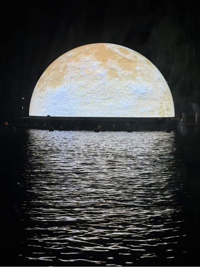 圍繞濠河一圈,意猶未盡;靜謐的燈光從沿岸照亮河流,宛如一座浮在水上的宮殿。它的倒影在水中被拉長、揉碎,又重組,歷史在波光里變得朦朧而生動。張謇先生的雕像靜立在光影中,他凝視的,不再是百年前的荒灘,而是今日這流光溢彩的城。這一刻,博物館的圍墻在視覺上消失了,整條濠河都成了它的展廊,每一道波光都在講述著“中國近代第一城”的往事。