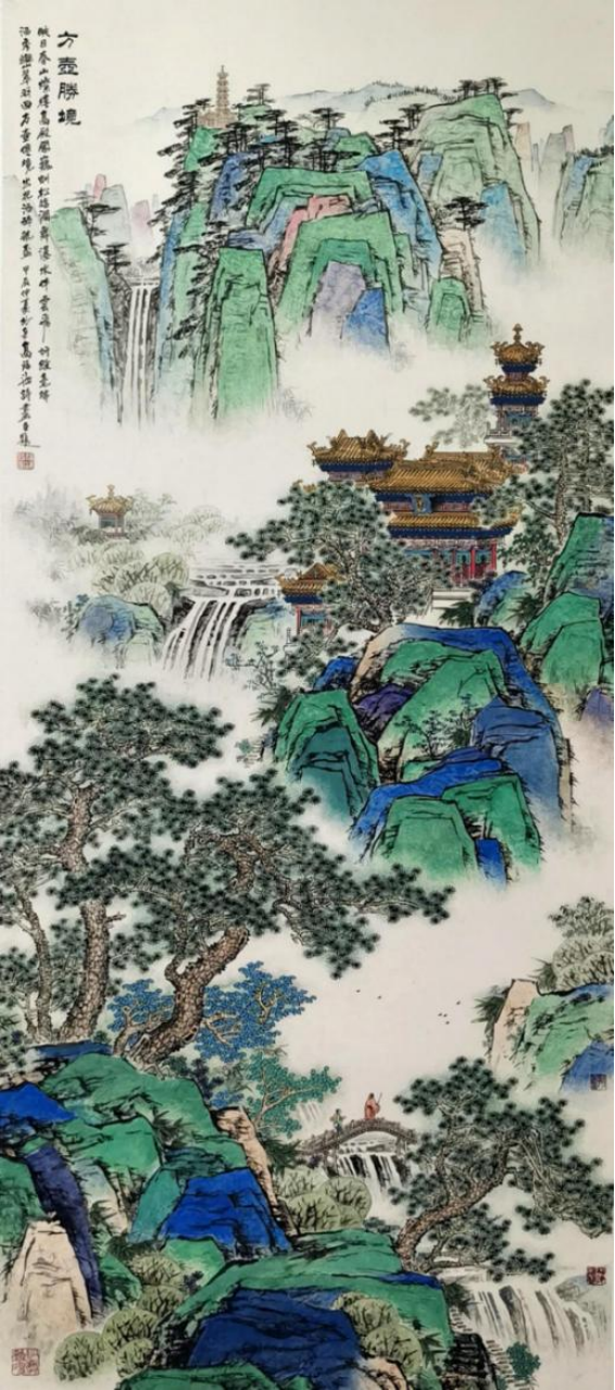 2024年7月為應內蒙古呼和浩特大召寺趙九九住持邀請為大召寺創(chuàng)作樓閣界畫《大召無量寺勝境圖》136cmX69cm。