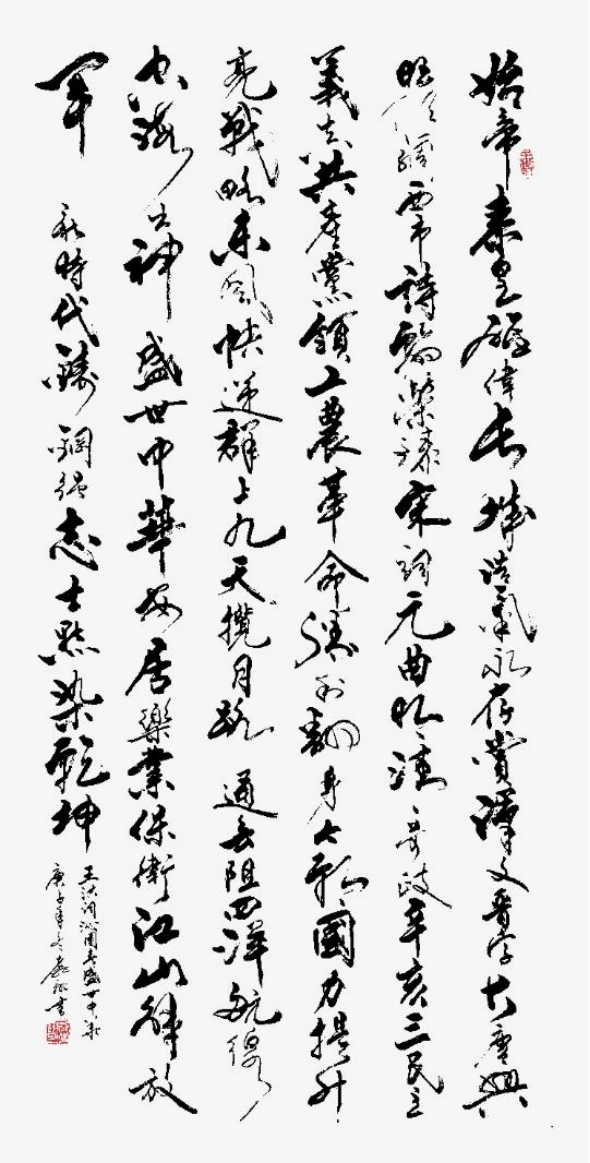 若說盆景是秦翥翊 “師法自然” 的藝術(shù)表達(dá),那么書法便是他 “寄情筆墨” 的精神寄托。在深耕盆景的同時(shí),他從未停下對書法的探索 —— 從臨摹歷代名家碑帖起步,他在楷書的端莊中悟法度,在行書的靈動中品氣韻,逐漸形成 “剛?cè)岵?jì)、兼具筋骨” 的個(gè)人風(fēng)格。他的書法不僅重 “技”,更重 “意”—— 他常以自撰詩詞、楹聯(lián)入筆,將對陽朔山水的熱愛、對時(shí)代變遷的感悟融入筆墨,讓作品既有書法的線條之美,又有文學(xué)的意境之深。這種 “文墨相融” 的特質(zhì),讓他的書法超越了單純的技法展示,成為傳遞情感與思想的載體。