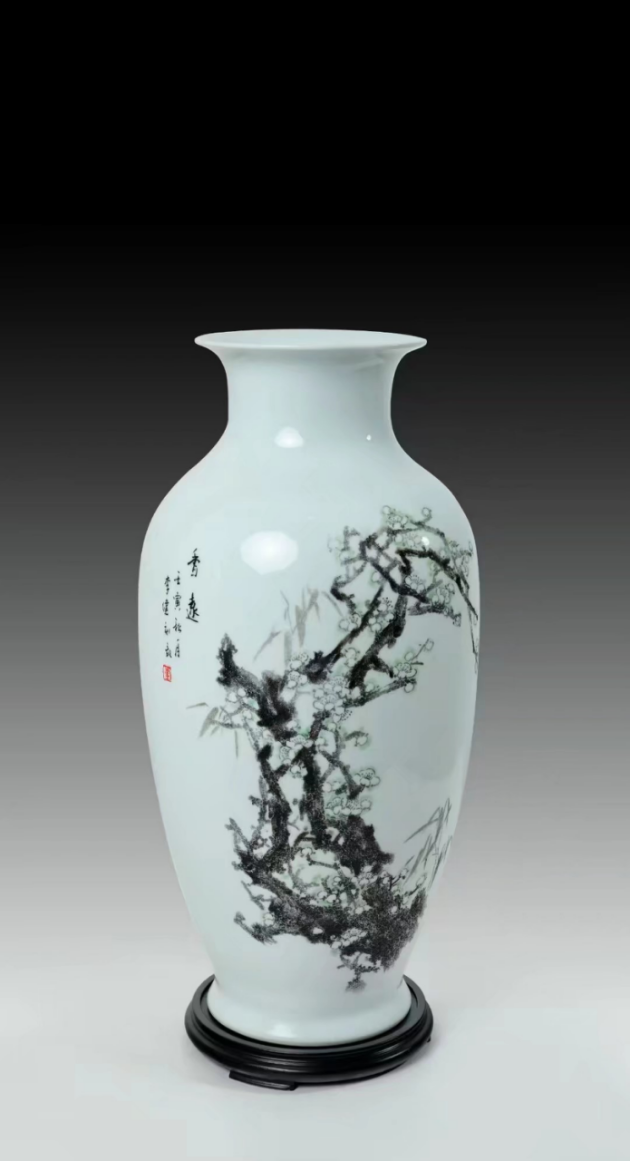 “工欲善其事,必先利其器。” 2015年《芷蘭齋》李健藝術工作室的成立,是他藝術生涯的重要轉折點,更是他踐行藝術追求的堅實陣地。“芷蘭齋”之名,取自《孔子家語·六本》“與善人居,如入芝蘭之室,久而不聞其香,即與之化矣”,既彰顯了他對藝術純粹性的堅守,也暗含了以藝術涵養(yǎng)心性的追求。工作室成了他打磨技藝、探索創(chuàng)新的“修行之地”:在這里,他將師承所學與個人感悟深度融合,突破傳統(tǒng)刻瓷題材的局限,讓山水的靈秀、花鳥的鮮活、人物的神韻乃至現代生活的煙火氣,都成為瓷上的創(chuàng)作素材;在這里,他大膽嘗試將現代審美理念融入傳統(tǒng)技藝,在線條的流暢性與構圖的創(chuàng)新性上尋求突破,讓作品既保留“刻瓷如繡”的細膩質感,又兼具當代藝術的視覺張力。正如古人所言“窮則變,變則通,通則久”,李健在堅守傳統(tǒng)的基礎上順勢而為,讓《芷蘭齋》不僅成為個人藝術創(chuàng)作的核心載體,更成為淄博刻瓷藝術當代轉化的重要窗口。