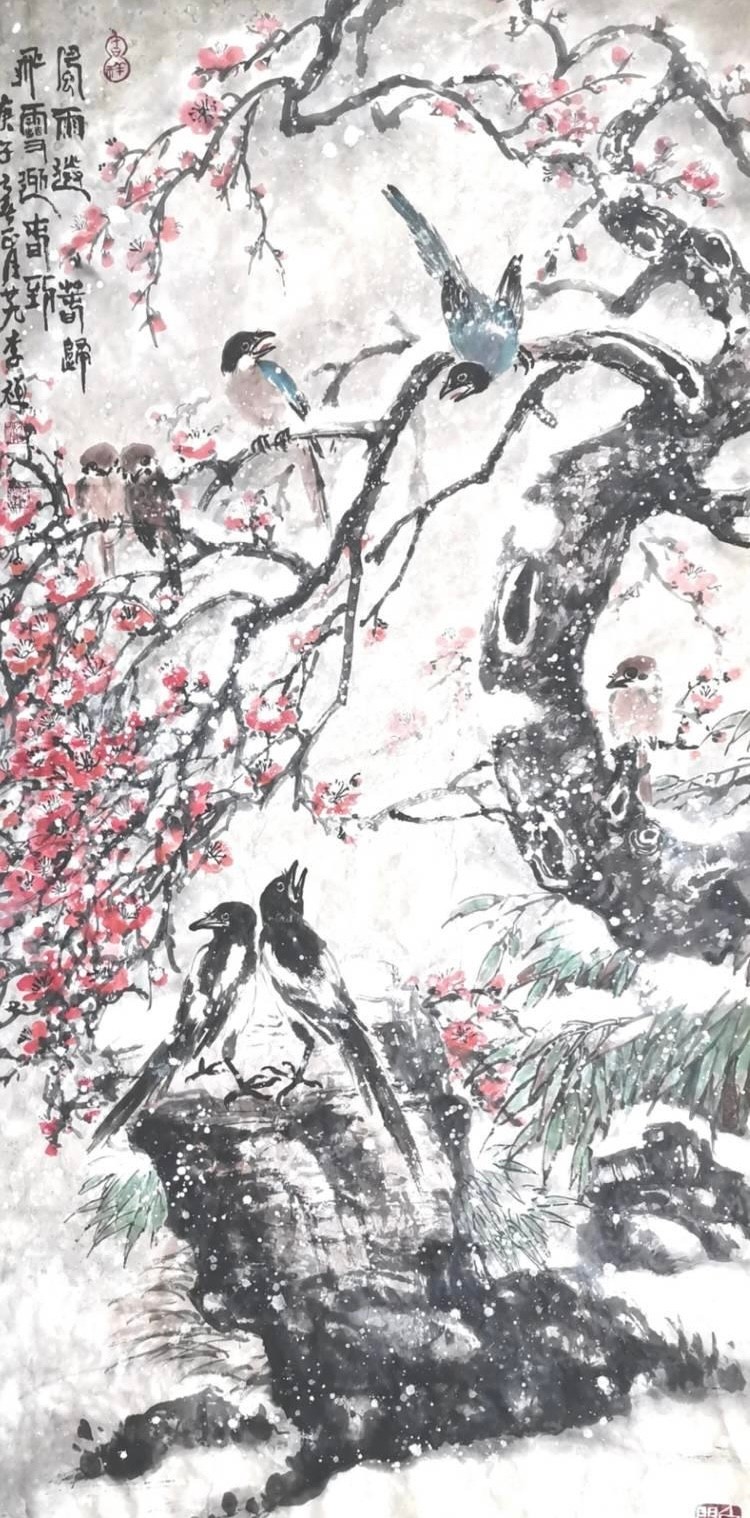 三位恩師,三種風(fēng)范,卻皆以赤誠之心傳藝育人。李嬋沐風(fēng)承雨,將恩師的教誨融于筆墨,在寫意與工筆之間自在游走,終成獨具一格的藝術(shù)風(fēng)貌。這份跨越時光的師徒情緣,既是翰墨傳承的見證,更是藝術(shù)精神的延續(xù)。