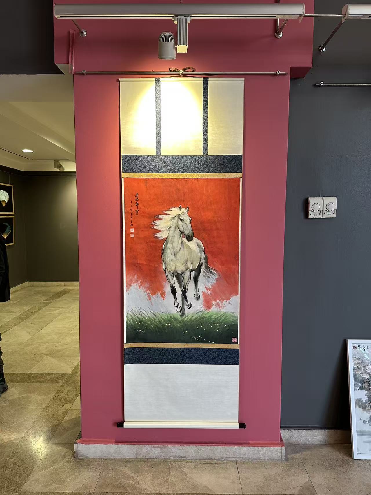 常州工學(xué)院李昱春教授應(yīng)邀創(chuàng)作了四件風(fēng)格各異的畫作參展。其創(chuàng)作的四幅作品憑借鮮明的中西融合風(fēng)格引發(fā)關(guān)注,尤以土耳其梵貓、白樺林、馬為題材的畫作備受青睞。