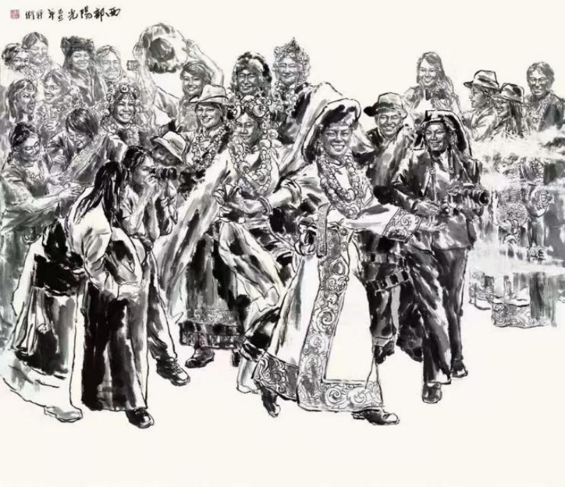 同時,他的創(chuàng)作始終與時代同頻共振?!逗教煊⑿鄣灾緞偂愤@幅作品,聚焦中國航天事業(yè)的高光時刻,以細(xì)膩的筆觸刻畫了航天英雄與各族群眾互動的溫馨場景。畫面色彩明快,人物神態(tài)生動,將航天英雄的榮耀與民眾的自豪之情巧妙融合,生動展現(xiàn)了時代的偉大成就,使作品具有強烈的時代印記與精神感召力。