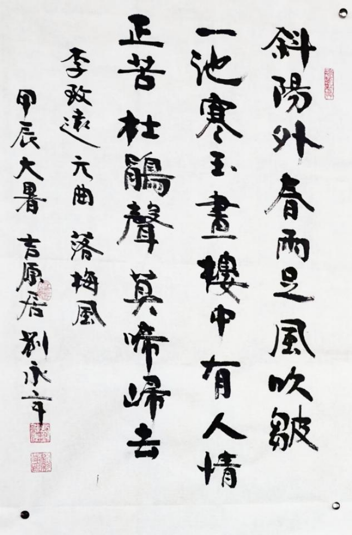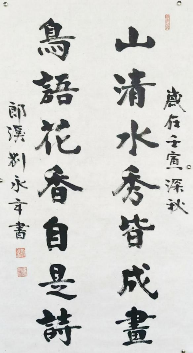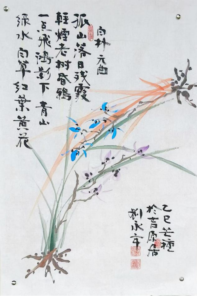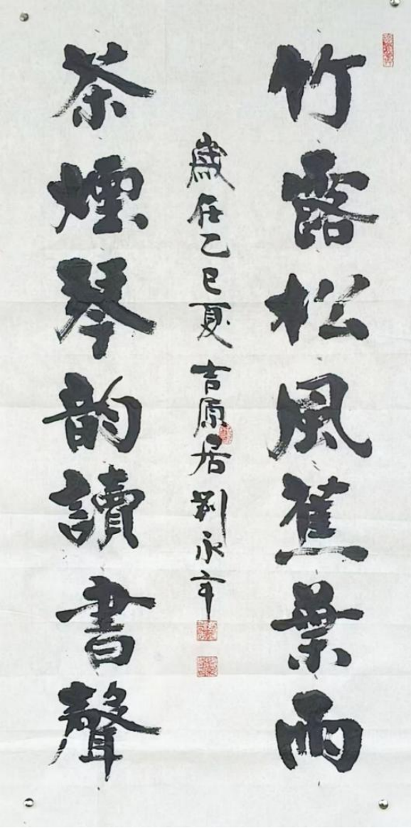 劉永年與書法的緣分,早已融入 “書法世家” 的血脈傳承中。童年時,在家族嚴教與墨香熏陶下,他便對橫平豎直的漢字生出天然的親近 —— 握筆的姿勢、運筆的力度、結(jié)構(gòu)的排布,那些刻在記憶里的書法啟蒙,成為他日后重拾筆墨的 “初心伏筆”。早年雖投身電力領(lǐng)域,專注于專業(yè)學(xué)習(xí)與工作,卻始終將對書法的熱愛藏于心底:或許是工作間隙偶見的碑帖,或許是街頭巷尾的匾額題字,都能勾起他對筆墨的向往。這份 “藏于歲月” 的熱愛,在他晚年歇業(yè)后終于得以釋放 —— 他重新執(zhí)筆,以 “初學(xué)者” 的謙遜與 “世家子” 的功底,一頭扎進書法的世界:臨摹楷書,他沉醉于顏筋柳骨的規(guī)整風(fēng)骨;研習(xí)行書,他體悟王羲之《蘭亭序》的靈動氣韻;探索隸書,他品味蠶頭燕尾的古樸韻味。更難得的是,他不滿足于單純的 “模仿”,而是嘗試將 “蘭竹之韻” 融入書法 —— 觀察蘭葉的舒展、竹桿的挺拔,將這份自然的靈動轉(zhuǎn)化為筆墨的節(jié)奏,讓書法作品既有法度的嚴謹,又有草木的生機,逐漸形成 “剛?cè)岵⒀潘坠操p” 的個人風(fēng)格。