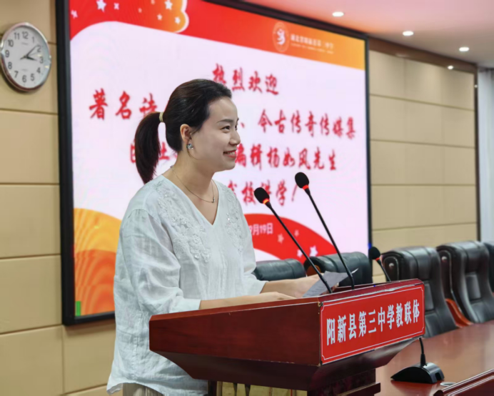 《中華英才》半月刊網(wǎng)湖北訊(通訊員 鄭尚錕)為進(jìn)一步激發(fā)學(xué)生的文學(xué)熱情,提升寫作素養(yǎng),營造書香滿溢的校園文化氛圍,9月19日,陽新縣第三中學(xué)春暉文學(xué)社特邀著名詩人、作家楊如風(fēng)蒞臨學(xué)校舉辦了一場別開生面的文學(xué)專題講座。校長余小芳、副校長陳春佳等校領(lǐng)導(dǎo),與全體文學(xué)社成員及部分七年級師生共赴這一文學(xué)盛會。