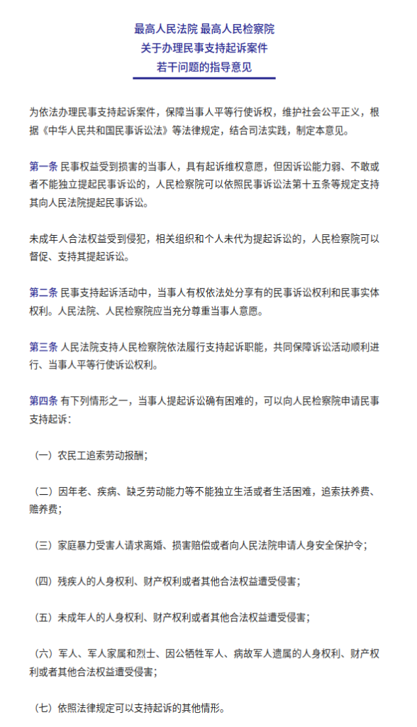 最高人民法院、最高人民檢察院近日聯(lián)合印發(fā)關于辦理民事支持起訴案件若干問題的指導意見,并于3月24日公開發(fā)布。