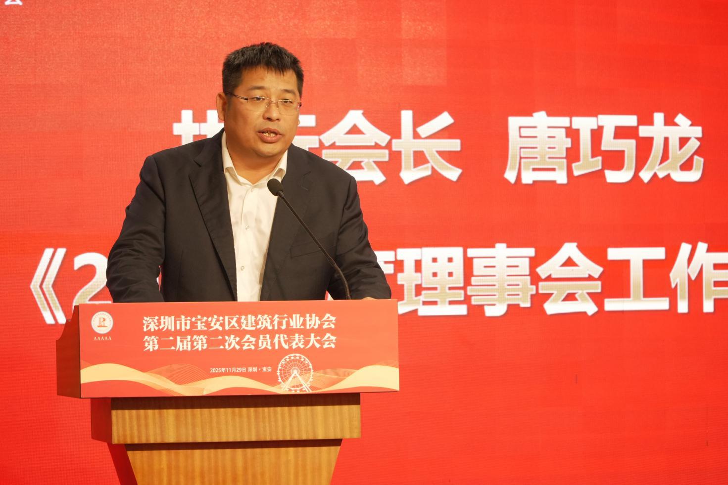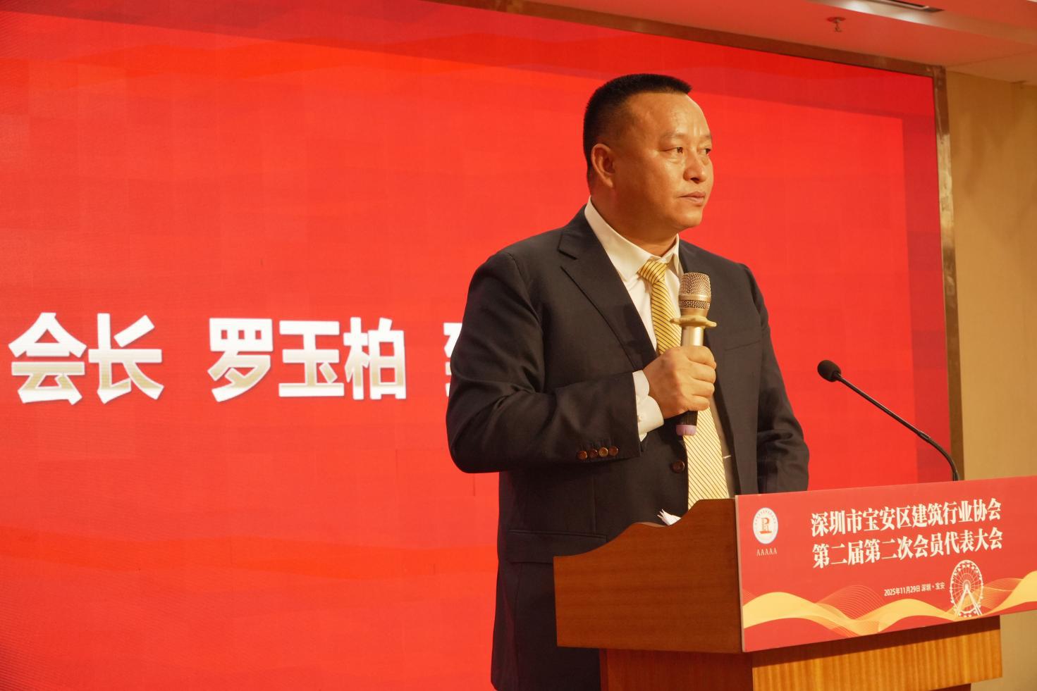 2025年11月29日,深圳市寶安區(qū)建筑行業(yè)協(xié)會第二屆第二次會員代表大會在西鄉(xiāng)街道寶悅酒店二樓多功能廳順利召開。寶安區(qū)住房和建設(shè)局黨組成員、機(jī)關(guān)黨委專職副書記、紀(jì)委書記、二級調(diào)研員盧鵬飛同志,寶安區(qū)社會組織黨委副書記錢東升同志及其他相關(guān)部門領(lǐng)導(dǎo)、會員代表、邀請嘉賓出席會議。