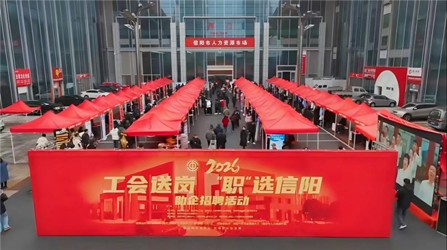春節(jié)的余溫尚未散去,河南省信陽(yáng)百花會(huì)展中心西大廳內(nèi)已是人頭攢動(dòng)。2月28日上午,2026年“工會(huì)送崗·‘職’選信陽(yáng)”助企招聘活動(dòng)在這里拉開(kāi)帷幕。這是信陽(yáng)市總工會(huì)在全市“破除中梗阻、提升軟環(huán)境”動(dòng)員部署大會(huì)后的首個(gè)大型就業(yè)服務(wù)行動(dòng),也是蘇信合作在人力資源領(lǐng)域的一次深度聯(lián)動(dòng)。