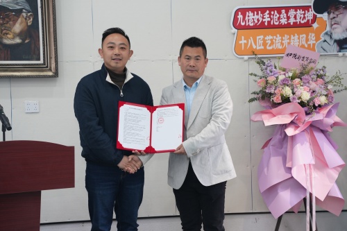 華夏文化促進(jìn)會(huì)書(shū)畫(huà)分會(huì)向荊州李涵藝術(shù)館館長(zhǎng)吳昊頒發(fā)華夏文化促進(jìn)會(huì)書(shū)畫(huà)分會(huì)秘書(shū)長(zhǎng)助理聘書(shū)