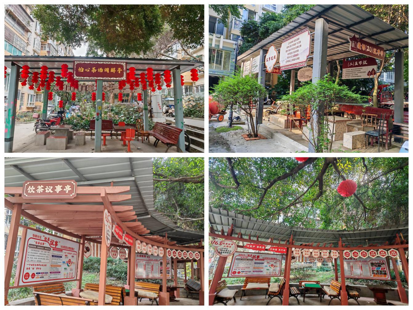 怡新社區(qū)深耕基層治理,以居民需求為導向,破解鄰里議事無陣地、矛盾調(diào)解無場所、社區(qū)共建無平臺的治理難題,因地制宜打造“飲茶議事亭”“愛鄰(20)議事亭”“怡心茶話調(diào)解亭”三大特色議事陣地。從最初網(wǎng)格員走訪收集的“盼一處能坐下來聊的地方”民生訴求,到社區(qū)黨委牽頭召集居民代表、黨員骨干、物業(yè)代表共商共建,再到籌工籌勞、鏈接資源完成陣地打造,每一處亭子的落地,都凝聚著社區(qū)與居民的同心合力。