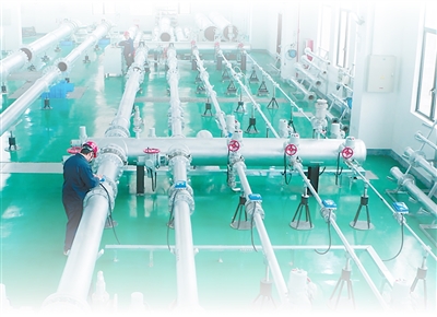 江蘇神通的技術(shù)人員正在調(diào)試閥門流量流阻特性試驗(yàn)裝置。江蘇神通閥門股份有限公司供圖
