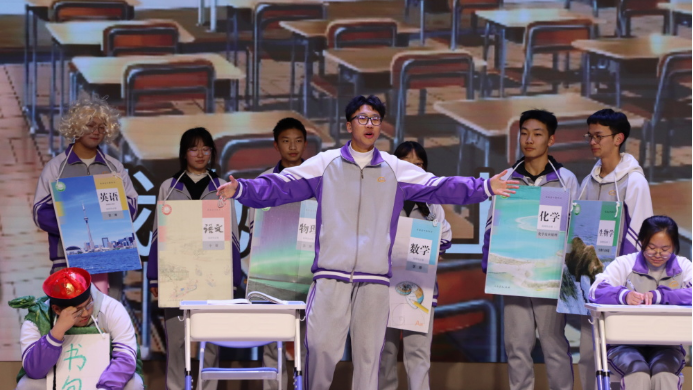 心懷家國(guó),目有山河。從意蘊(yùn)悠長(zhǎng)的情景小品到婉轉(zhuǎn)激昂的合唱?dú)g歌,學(xué)子們以藝術(shù)為載體,回望百年征程,禮贊盛世華章。小品中,他們以鮮活角色復(fù)刻歲月榮光,用真摯演技傳遞赤子之心。